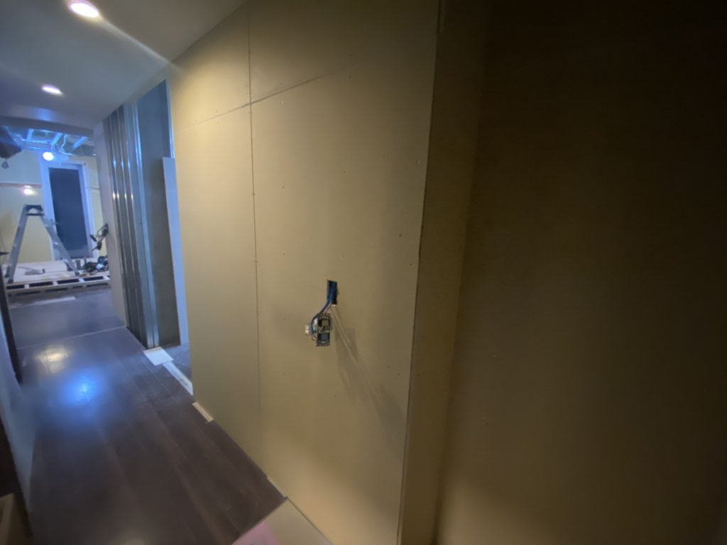 解体が終わり、木工事に入っていきます。 キッチンを中心としたラウンジライクなスペースの骨子ができつつあります。 玄関からキッチン・リビング・ファミリールーム・ワークルームがつながり、家族で生活を分け合って暮らすワンルーム…