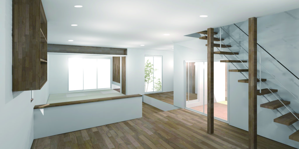お客様へのプレゼンは、CGと模型とスケッチを用意します。 これは桑原の家の時のCGですが、光の入り方や空間の広がりをお客様と設計者が共有するのに役立ちます。 模型とCGと図面を片手に、あーでもない、こーでもないといってど…