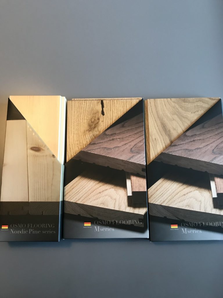 オスモ&エーデルさんが木板のサンプルを事務所に持って来てくださりました。 厚み21mmの重厚感ある板材から、木の温かみを感じることができます。