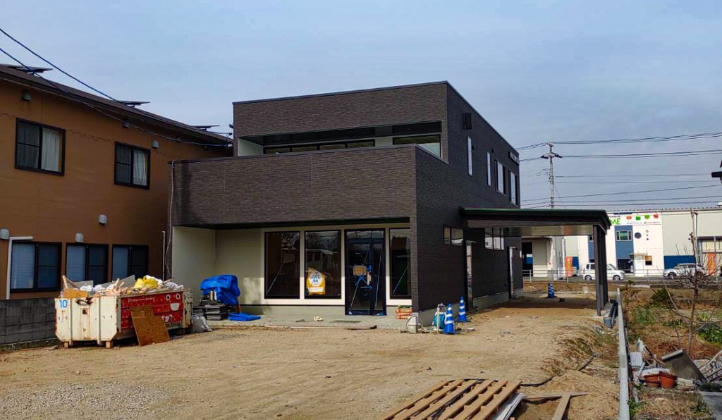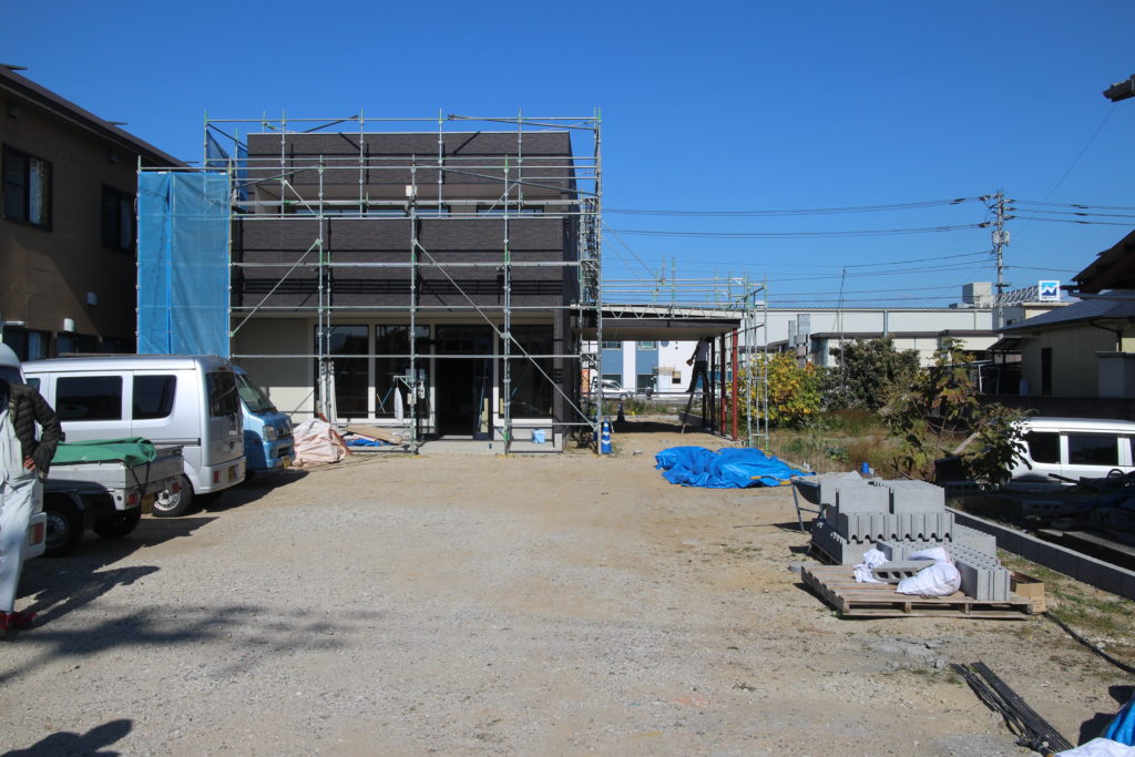 松山市でT歯科さんの打合せがありましたので、東垣生の住宅の進捗を除いてきました。 足場がなくなり、建物ボリュームがはっきりと分かります。 エッジが効いて、凛とした建物になってきています。 外壁の板張りと、塗装工事、内装工…